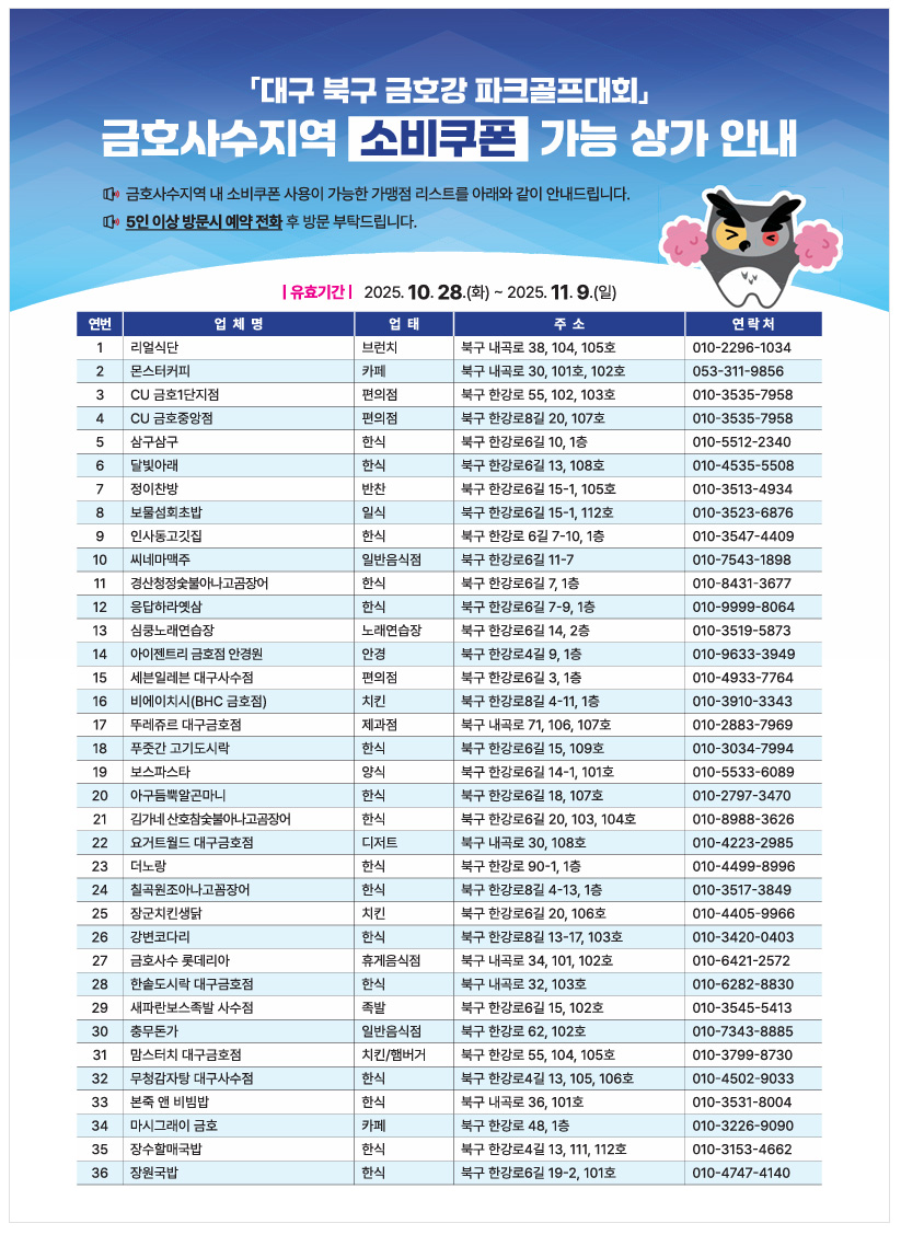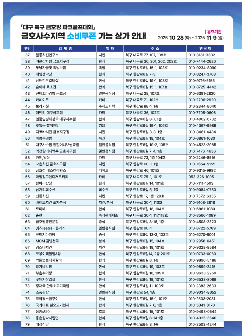 - 소비쿠폰 사용 가능한 가맹점 리스트 -